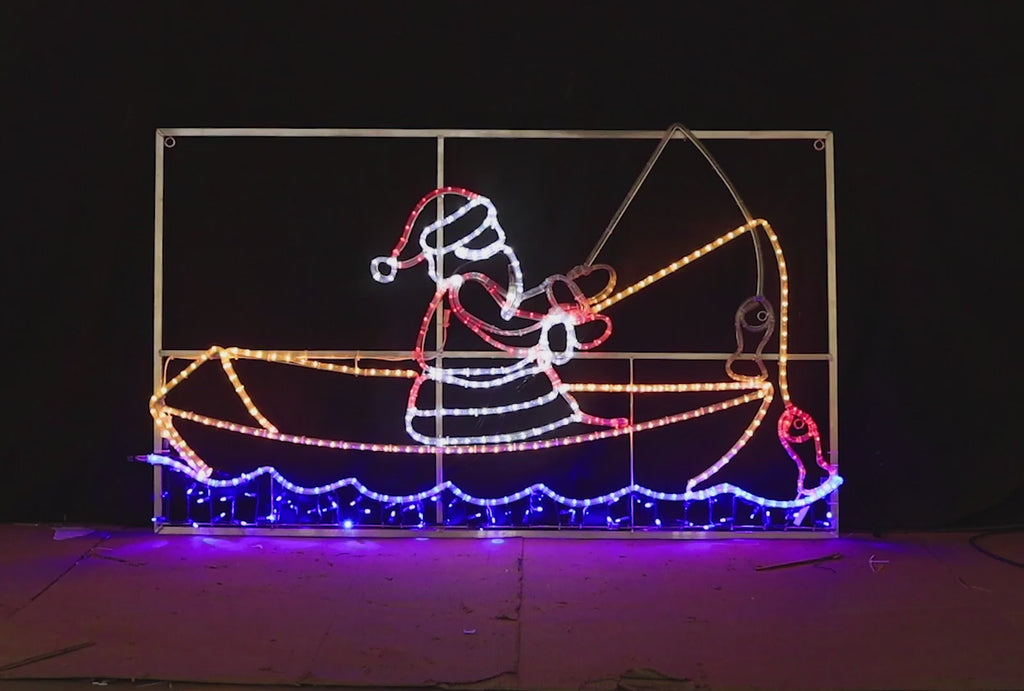 6ft Santa in Fishing Boat Animated Christmas Neon Rope Light Display