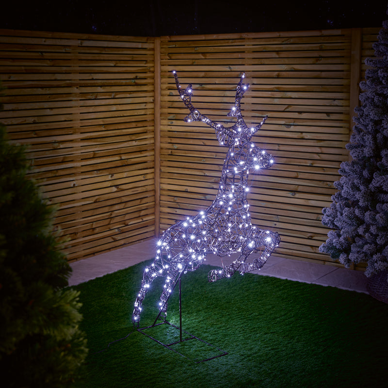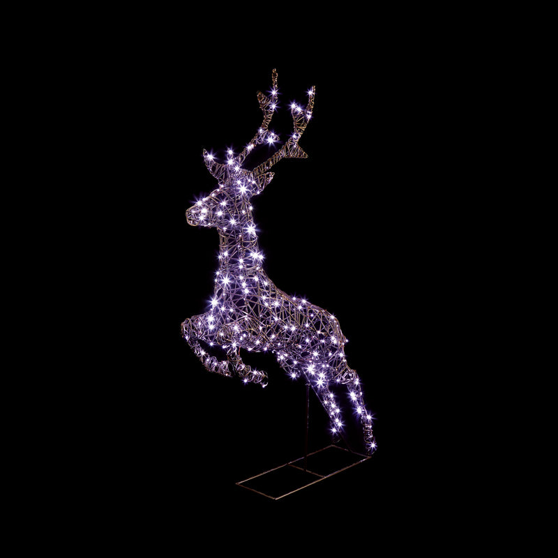 1.5m Brown Rattan Leaping Reindeer with 260 LEDs (White & Warm White Colour Switch)
